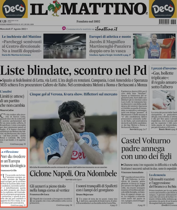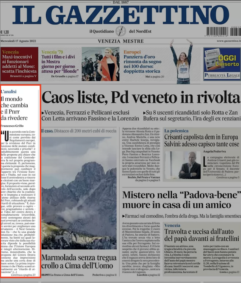 Editoriale di Francesco Grillo per Il Messaggero, Il Mattino, Il Gazzettino del Nord Est.