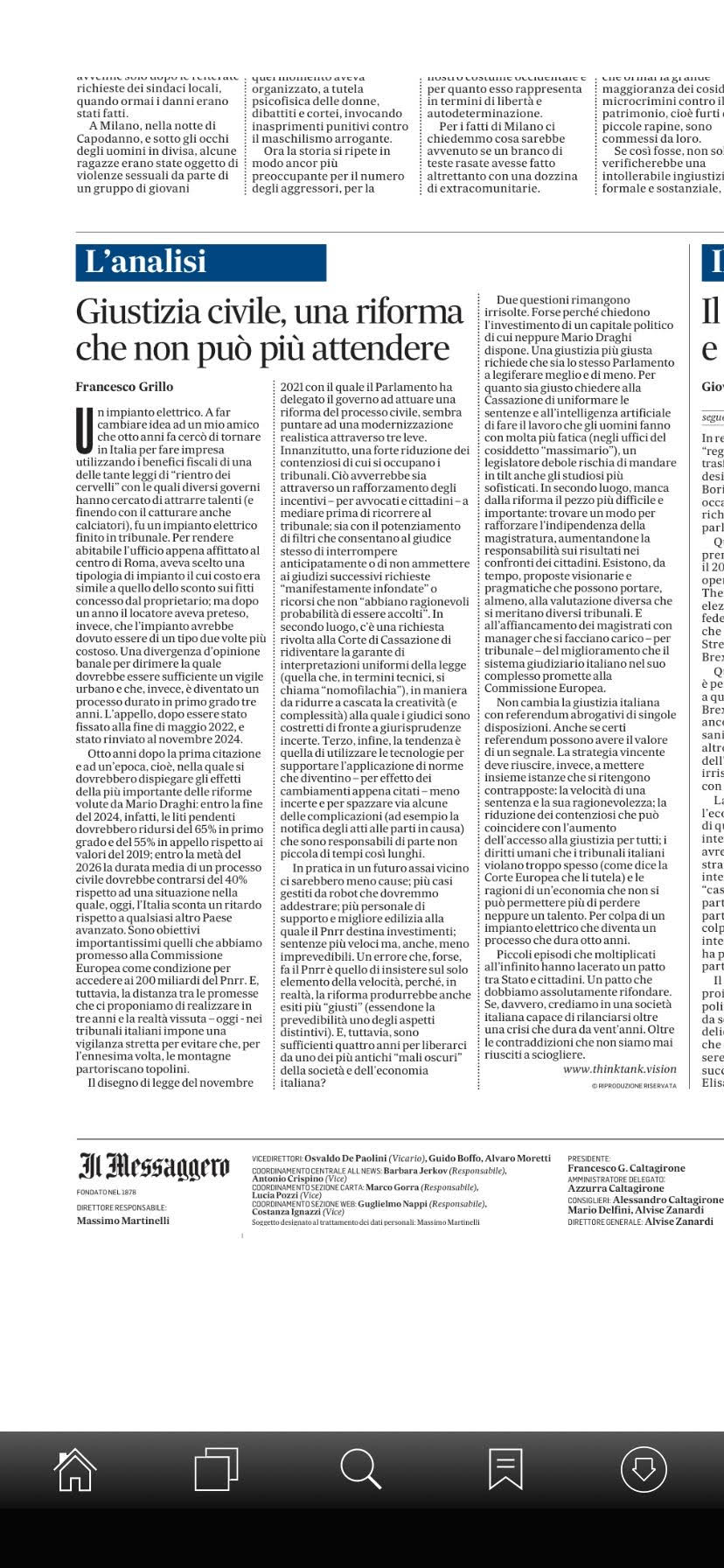 Due questioni rimangono irrisolte. Forse perché chiedono l’investimento di un capitale politico di cui neppure Mario Draghi dispone. Una giustizia più giusta richiede che sia lo stesso Parlamento a legiferare meglio e di meno. Per quanto sia giusto chiedere alla Cassazione di uniformare le sentenze e all’intelligenza artificiale di fare il lavoro che gli uomini fanno con molta più fatica (negli uffici del cosiddetto “massimario”), un legislatore debole rischia di mandare in tilt anche gli studiosi più sofisticati. In secondo luogo, manca dalla riforma il pezzo più difficile e importante: trovare un modo per rafforzare l’indipendenza della magistratura, aumentandone la responsabilità sui risultati nei confronti dei cittadini.