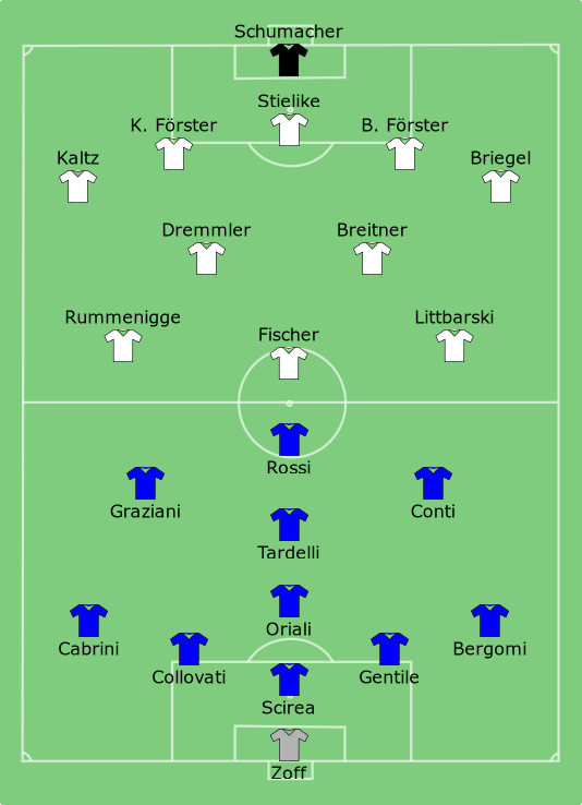 Del resto, anche, il calcio usciva da un trauma: due anni prima, il primo grande scandalo portò il MIlano in serie B e alla squalifica della stella più luminosa della serie A (appunto, Paolo Rossi). Ed è curioso che anche la Nazionale del 2006 vinse la Coppa, mentre più della metà dei suoi titolari venivano da una Juventus appena privata di due scudetti e retrocessa da Calciopoli.